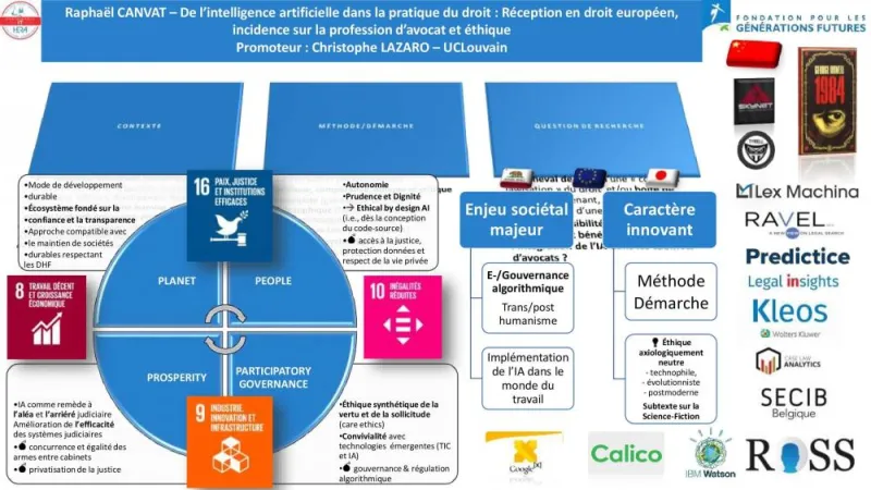 Le mémoire de Raphaël Canvat s’intéresse au poids et à l’impact des outils d’intelligence artificielle (IA) dans les cabinets d’avocats et, plus largement, dans le secteur de la justice. Son approche est résolument transversale : technique et juridique, mais aussi sociologique et philosophique. Elle est également marquée d’impératifs éthiques, questionnant la résistance des principes déontologiques de base (égalité des justiciables, non-discrimination…) aux avancées de la digitalisation et de l’IA. Exemples de questions abordées : l’IA est-elle de nature à résoudre l’arriéré et l’aléa judiciaires ? Si oui, comment et à quel prix ? L’interprétation du droit pourra-t-elle, un jour, se retrouver formalisée dans un langage de programmation et réduite à un système strictement computationnel ? L’auteur compare les situations européenne, japonaise et américaine. Au final, celui-ci prône un certain recul par rapport aux thèses technoscientophobes et à l’heuristique de la peur.