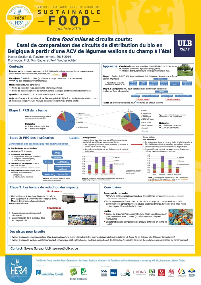 « Ce mémoire, basé sur une approche méthodologique claire et rigoureuse, arrive à des conclusions surprenantes. Il nourrit ainsi, avec des données objectives, une discussion nuancée sur les food miles et les circuits courts. Le travail a aussi le mérite de rendre attentif à des aspects auxquels on ne pense pas forcément dans ce contexte. »