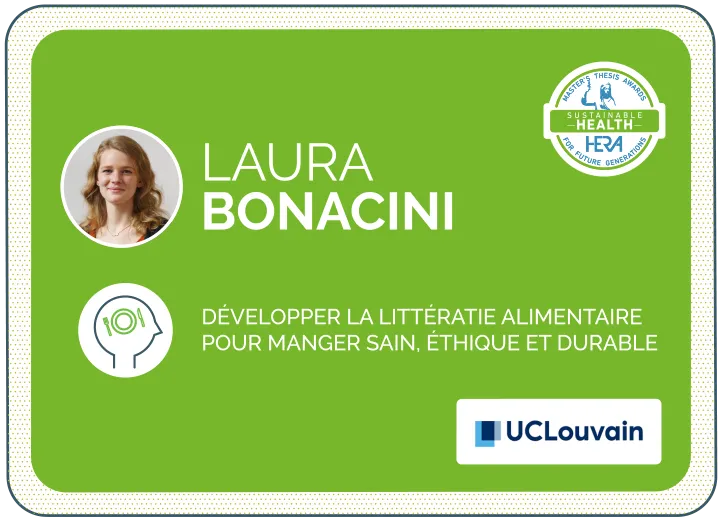 "Ce mémoire aborde un problème très actuel, tant au niveau local qu’au niveau mondial, en mobilisant une méthodologie rigoureuse et une vision systémique. Le jury souhaite mettre en lumière ce mémoire qui traite d’une question importante et très peu abordée, notamment dans le parcours de formation des acteur·rice·s de santé. Il souhaite que de futurs travaux traitent de cette question également sous l’angle des comportements alimentaires."