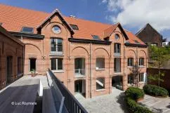Bel exemple de réhabilitation d’un bâtiment industriel ayant un impact positif dans un quartier réputé difficile. Il s’agit d’un habitat groupé, multigénérationnel (appartements et kots) et multifonctionnel (logements et bureaux).