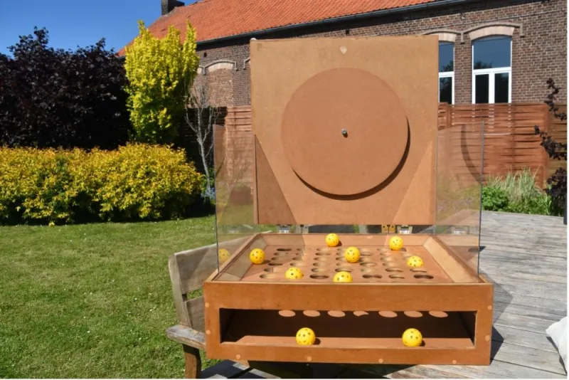 Etudiant en marketing à la HEPL, cela fait déjà 4 ans que l’idée de créer sa propre entreprise germe dans la tête de Robin Golenvaux. "Tout est parti d’un petit croquis sur un post-it, j’imaginais juste une machine de fête foraine complètement revisitée en bois". Quelques mois plus tard son rêve devient réalité après un long travail de recherche et de conception. C’est en proposant son jeu lors d'un évènement organisé au profit du Télévie qu’il s’étonne de voir que les adultes s’y intéressent aussi fortement : "Jamais je n’aurais imaginé que des adultes et personnes âgées seraient attirées par ce jeu, voir leurs yeux pétiller comme des enfants m’a donné l’envie de proposer ce jeu à la location". C’est à partir de cette observation que Robin a vu un vrai potentiel dans sa volonté de réunir les générations et que le projet est né.