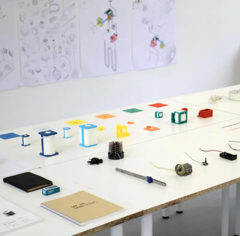 L'étude porte sur le fonctionnement interne des objets et plus spécifiquement sur les composants des petits appareils électroménagers. Thomas Billas développe 6 éléments de bases, mécaniques, électroniques et chauffants, connectables entre- eux et avec le reste des produits industriels. A partir de cette base, il peut reconstituer une soixantaine d'objets de notre quotidien. Un point de départ nécessaire pour proposer une solution aux problèmes de déchets, re-manufacturation des objets et la reconsidération des biens de consommation. Permettre au consommateur de comprendre et s'approprier son objet, de le réparer, transformer et échanger facilement.