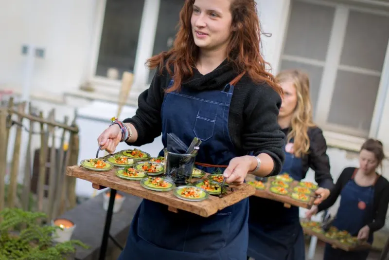 Sabien a commencé les préparatifs de la création du jardin de toiture en 2014. L’année suivante, l’initiative a pu prendre forme grâce à la collaboration avec Nine Van Belle, coadministratrice de la société. Depuis 2017, ROOF FOOD prépare des repas sur toit végétariens très sains destinés aux entreprises et livrés à vélo, assure un service de traiteur écoresponsable pour divers événements et organise des dîners sur toit lors des chaudes soirées d’été. Les plats sont préparés à partir de 90 % d’ingrédients bio cultivés sur le toit de l’entreprise et par des agriculteurs de la région. Et les lunchs de saison sont proposés dans des emballages réutilisables qui sont récupérés après la livraison. Autant de détails qui permettent à l’initiative de réduire considérablement ses émissions de CO2 et sa production de déchets. « Nous entendons avoir un impact maximal, mais sans perdre de vue notre identité unique », explique Sabien Windels, fondatrice de ROOF FOOD. Avec leur approche « de la semence à l’assiette », Sabien et ses collègues s’inscrivent en faux contre le modèle dans lequel chaque société se spécialise dans un seul maillon de la chaîne.