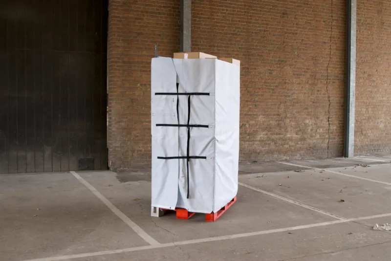 Le tissu d’emballage de Tillup est fabriqué à partir d’un flux de déchets constitué de bannières publicitaires et de bâches de chantier.
