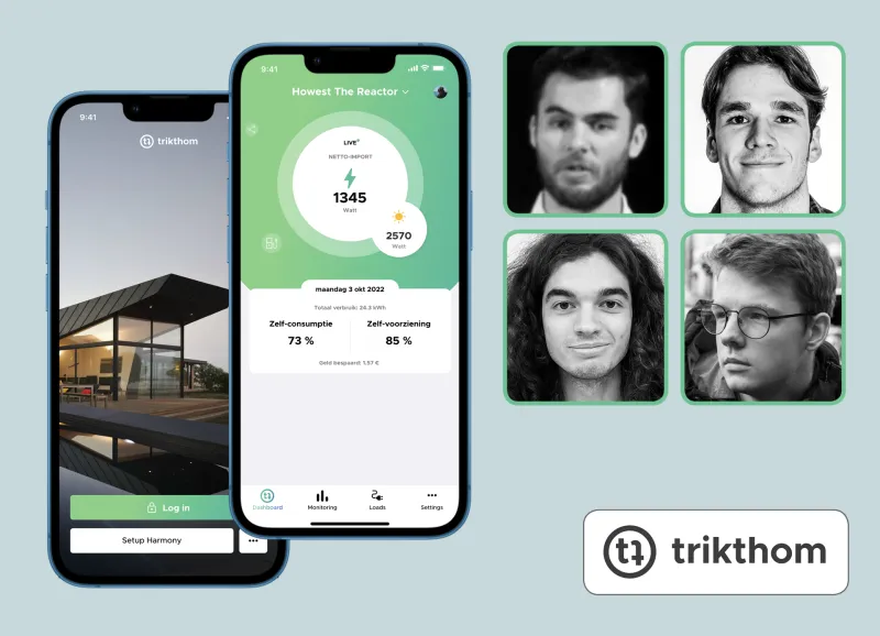 TrikThom Harmony est une startup fondée par Thomas Crombez, Thibo Destatsbader, Evert Devos et Arthur Vankeirsbilck. Leurs expériences dans les domaines des technologies de l’information et de la communication (TIC), de la gestion de l’énergie, de la construction et de l’ingénierie, leur permettent de relever des défis et de créer des solutions innovantes selon une approche tout à fait unique. Ces jeunes entrepreneurs sont soutenus par Howest Onderneemt et coachés par Vic Vansevenant.