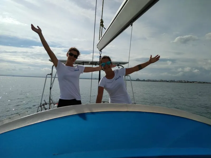 A bord de leur voilier, Leslie Bissey, océanologue et Elodie Gasparin, biologiste marin - l'équipe derrière WeOcean - partent à la recherche d’initiatives les plus innovantes, les plus impactantes et les plus prometteuses en Méditerranée et dans ses alentours. Elles regroupent toutes ces informations sur une plateforme en ligne où ces différentes initiatives et leur savoir-faire sont magnifiquement illustrées. A travers de petites capsules vidéos, vous pouvez faire connaissance avec les porteurs de projets et découvrir leur parcours ainsi que leurs objectifs. Ces vidéos permettent également de mettre en contact les porteurs de projets, de donner forme à de nouveaux partenariats et de créer une vaste "communauté marine durable". Le duo organise également des expéditions scientifiques, sportives et culturelles avec son voilier et réalise du matériel visuel de grande qualité (bientôt sous la forme d'un premier documentaire). Grâce à un grand nombre de panneaux solaires, ce voilier est autonome sur le plan énergétique.
