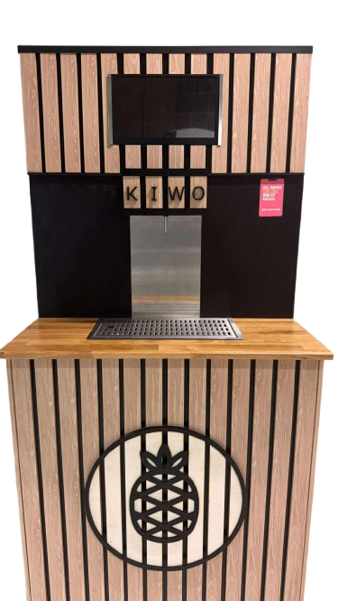 De nombreux distributeurs automatiques présents dans les lieux publics proposent des boissons sucrées, peu saines, et génèrent quotidiennement une quantité importante de déchets à usage unique. Pour répondre à cette problématique, KIWO propose un distributeur de boissons saines, sans emballage jetable, conçu pour s’intégrer facilement dans les espaces de vie et favoriser l’utilisation de gourdes réutilisables.