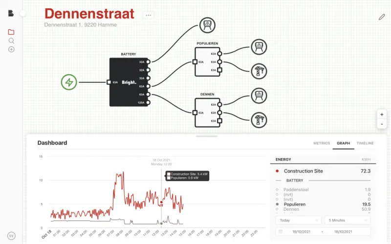 Bright Energy wil vervuilende dieselgeneratoren vervangen door slim inzetbare elektrische batterijen op bouwwerven. Omdat batterijen complexer zijn om te beheren dan dieselgeneratoren biedt het bedrijfje groene energie as-a-service. Het team staat in voor de installatie, optimalisatie, aansturing en monitoring van de batterij op maat.