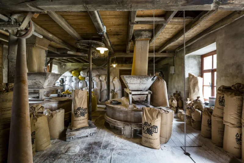Dankzij een strenge selectie van inheemse graansoorten en een wetenschappelijk onderzoek naar spelt in samenwerking met de UCL en de C-RAW, biedt de molen van Hollange uitzonderlijk smaakvolle en gezonde producten aan. De watermolen werkt opnieuw als vroeger, dankzij de kracht van de rivier “la Strange”. In het atelier houden Jocelyne, Christophe en Emannuelle de boel draaiende. Zij maken deel uit van een socio-professioneel inschakelingstraject en krijgen op deze vredige plek het ambacht aangeleerd.