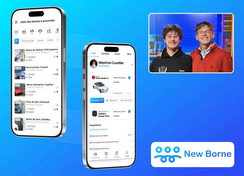 Met de steun van incubator Charleroi Entreprendre breidt New Borne zijn aanbod uit met diensten rond circulaire economie, toerisme en energiebeheer. Het team combineert commerciële expertise, design, marketing en technologie. Maxime ontwikkelt de strategieën en gebruikersinterfaces, terwijl Adrien zich toelegt op marktanalyses en positionering. Samen versnellen ze de evolutie naar toegankelijke en duurzame mobiliteit voor iedereen.